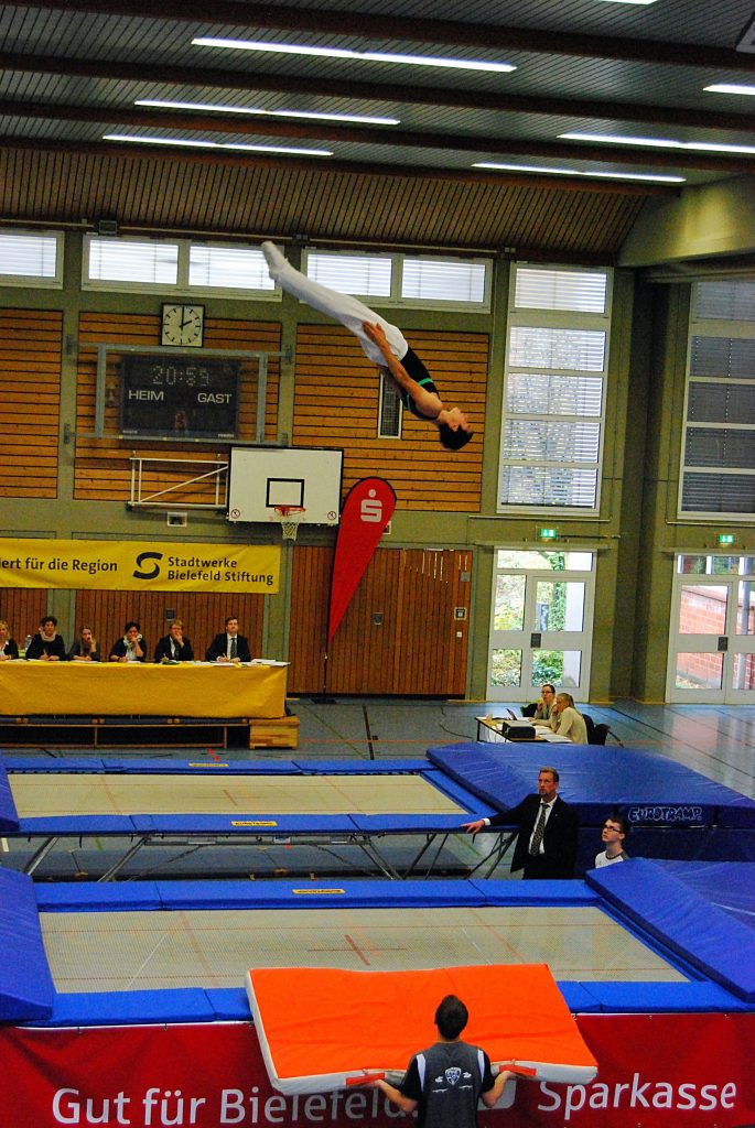 Bei den NRW Mannschaftsmeisterschaften starteten am letzten Sonntag 25 Trampolinvereine des Rheinischen und des Westfälischen Turnerbundes beim SV Brackwede in Bielefeld.