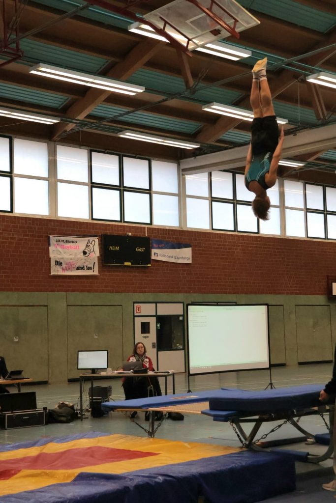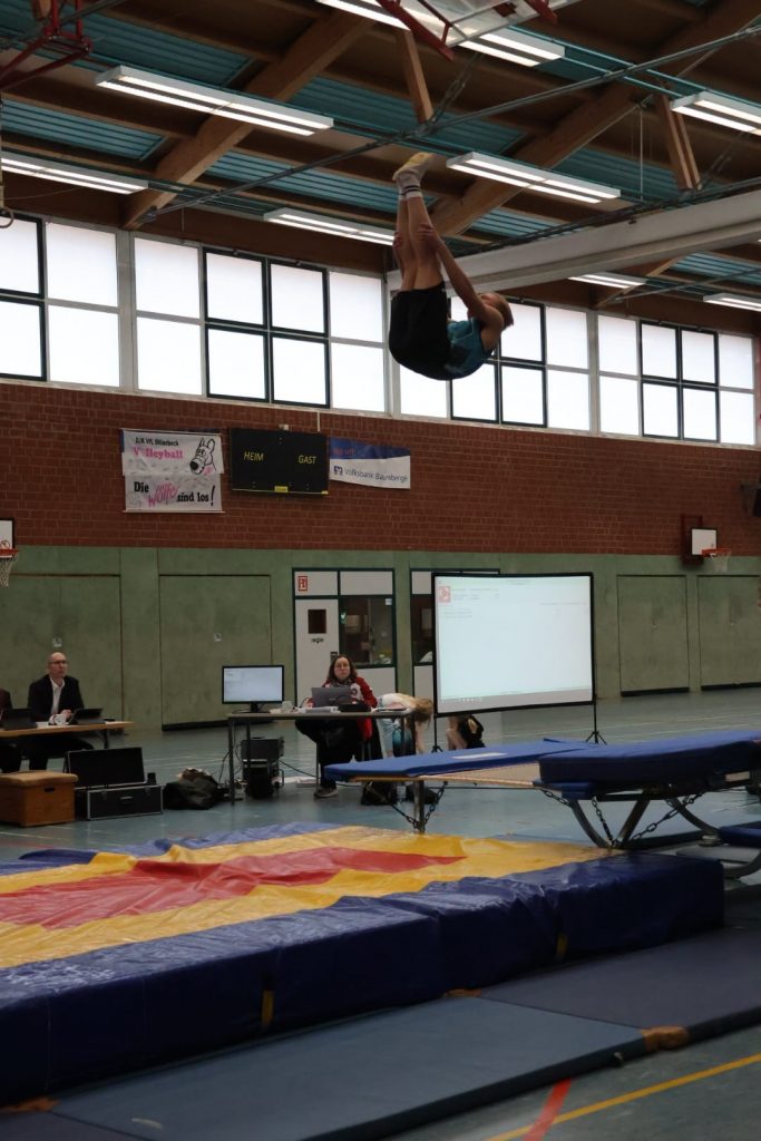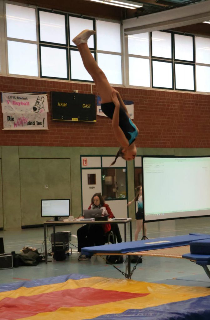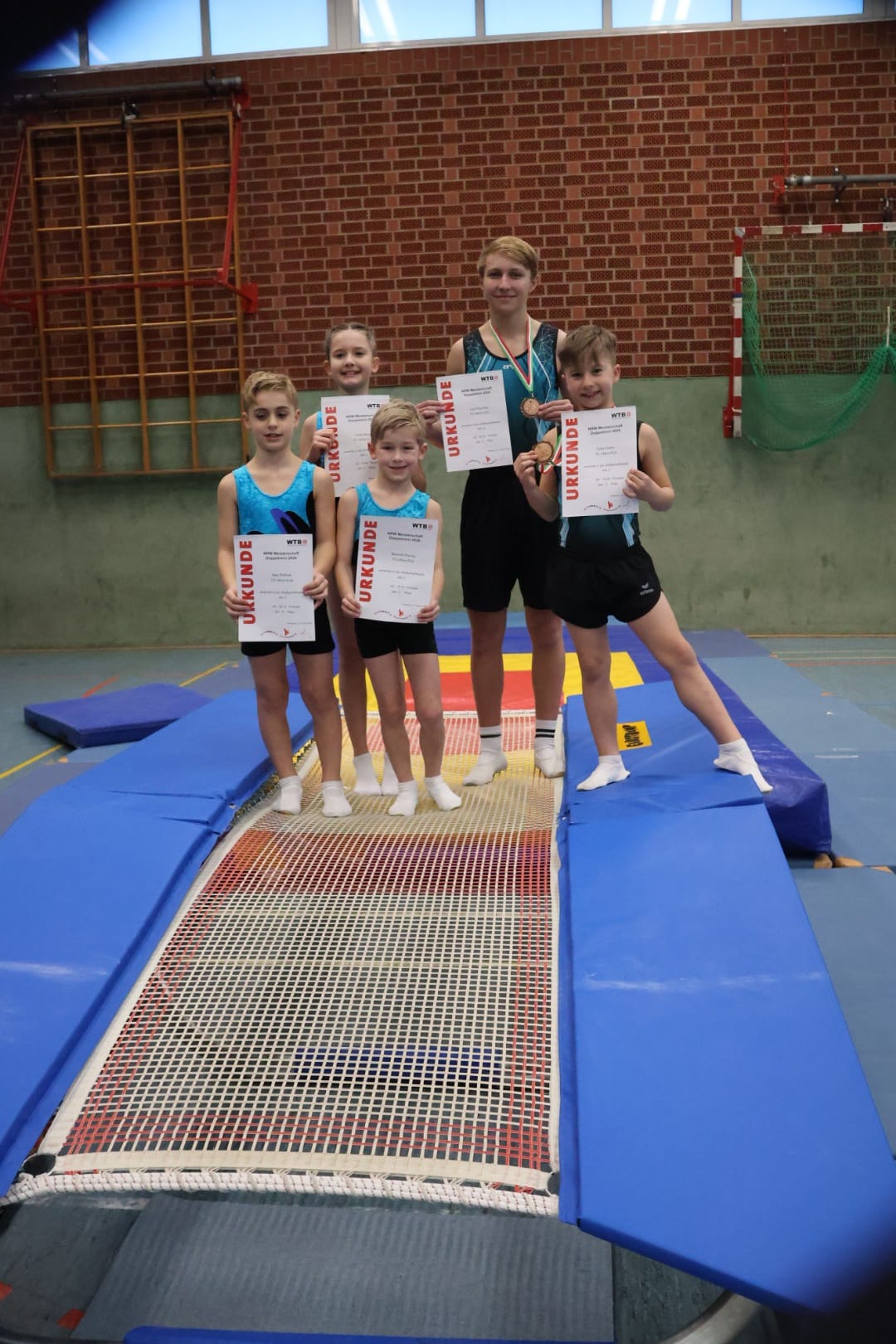 Die Trampolinsaison 2026 startete am Samstag, den 24.01. in Billerbeck mit den NRW-Meisterschaften auf dem Doppelmini-Trampolin. Hier nahm der TV Utfort-Eick als einzige Mannschaft aus dem Rheinischen Turnerbund mit fünf Aktiven teil.