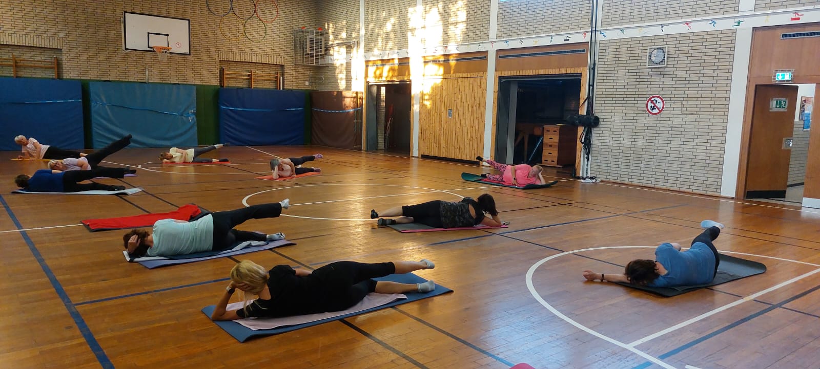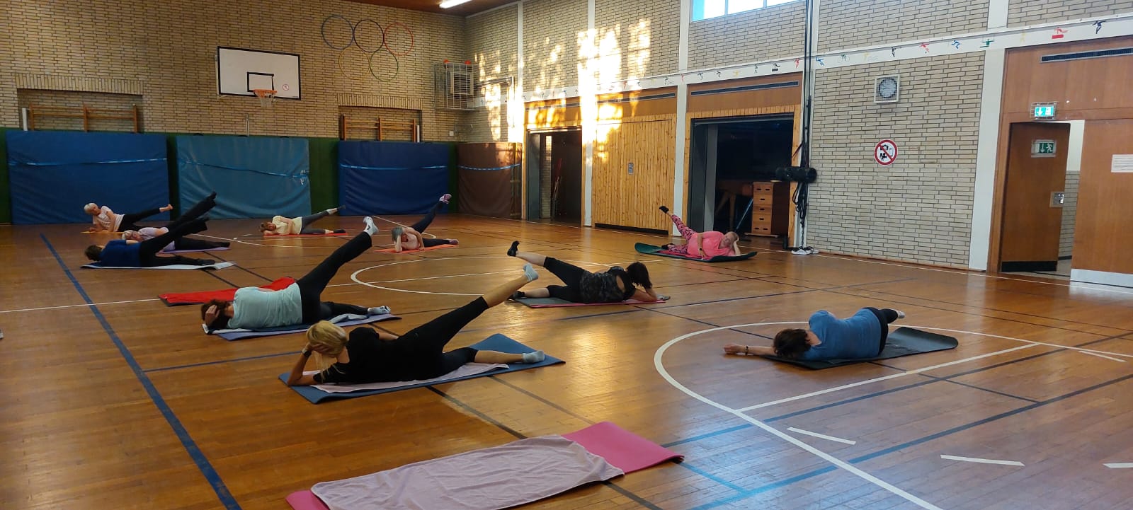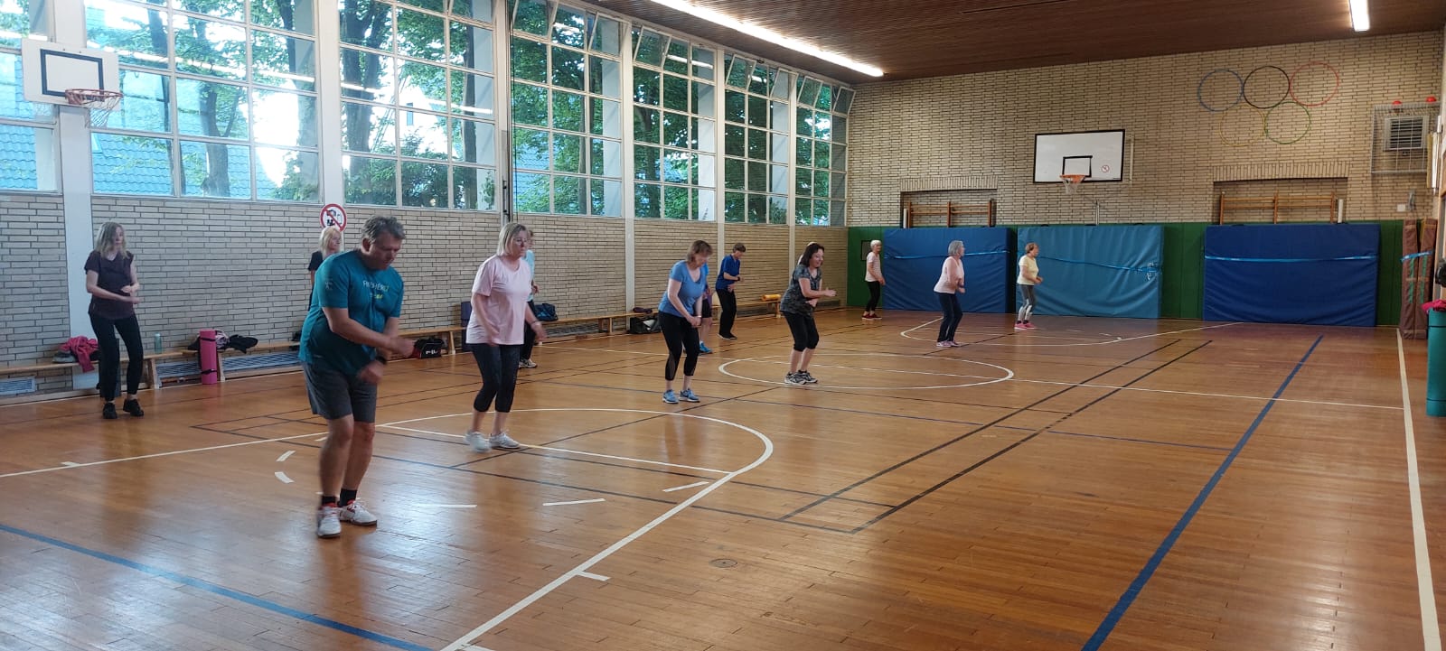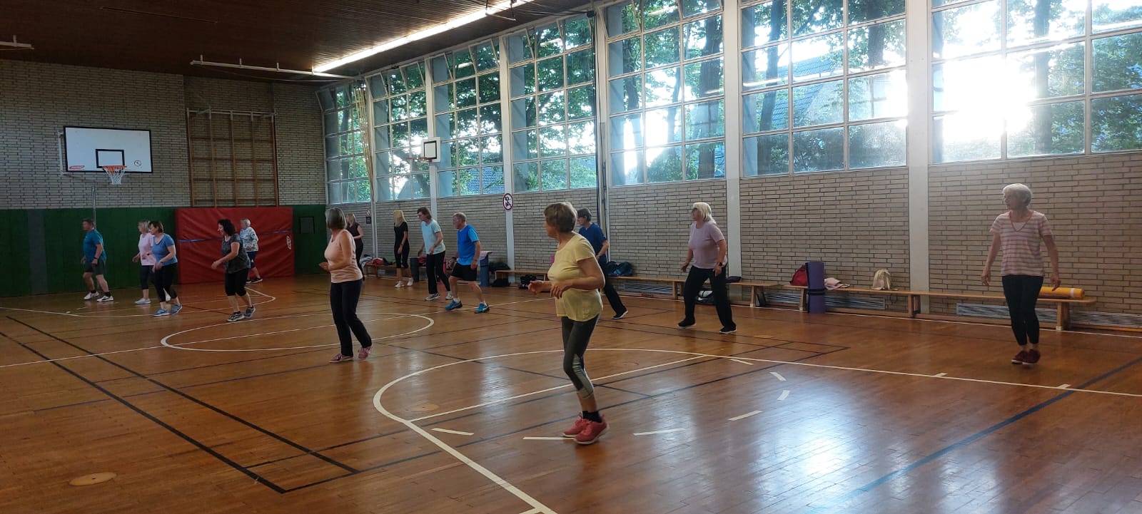 Für zusätzliche Abwechslung kommen regelmäßig verschiedene Trainingsgeräte zum Einsatz – wie Stepper, Flexibar, Hanteln oder Therabänder.
