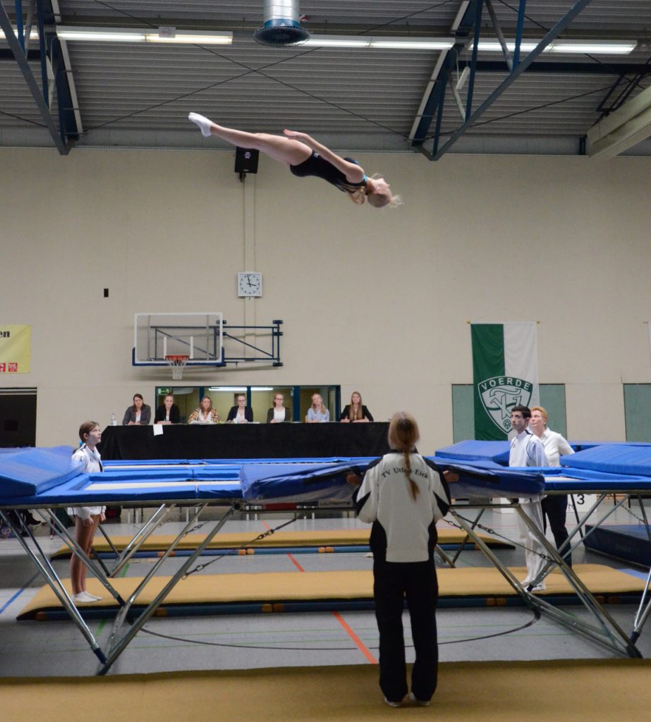 Hoch hinauf ging es am Samstag, den 16.05. beim TV Utfort-Eick, denn in der Halle an der Kirschenallee fand der 2. Ligawettkampf der Trampolinturner(-innen) statt. Der erste Wettkampf wurde bereits am 9. April. in Voerde ausgetragen.