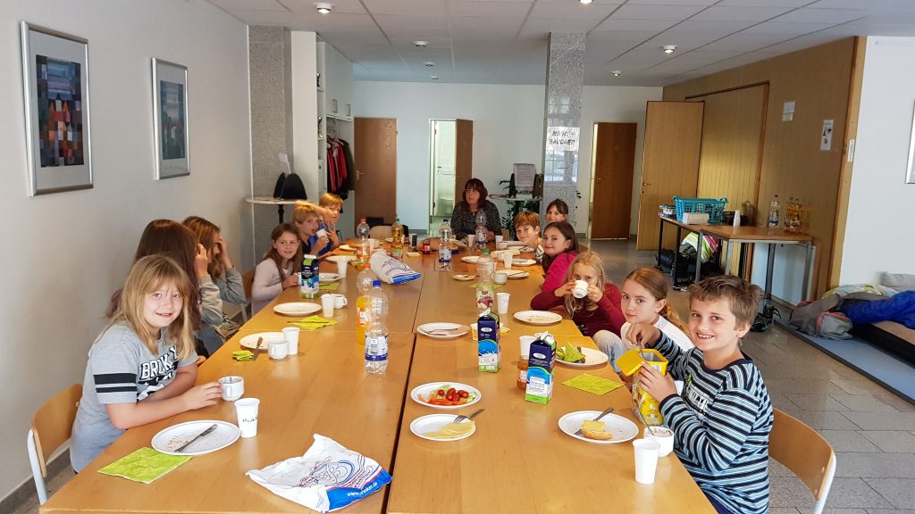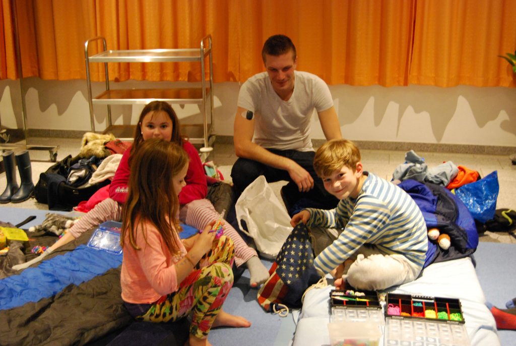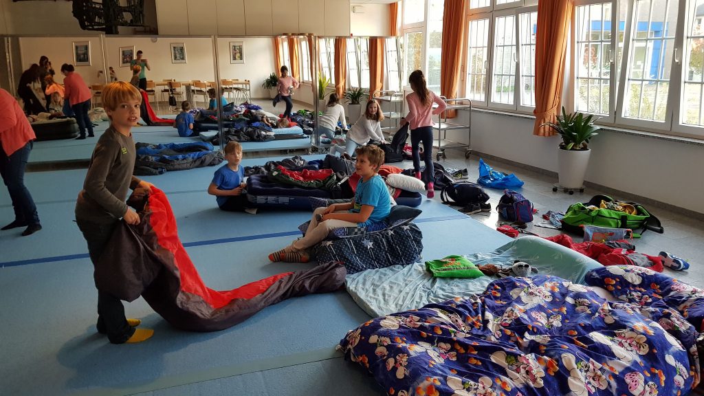 Um 16:00 Uhr trudelten die Vereinskinder so nach und nach ein. Jeder suchte sich einen Schlafplatz auf den Matten im MZR und die Eltern halfen noch schnell beim Aufpumpen der Luftmatratzen.