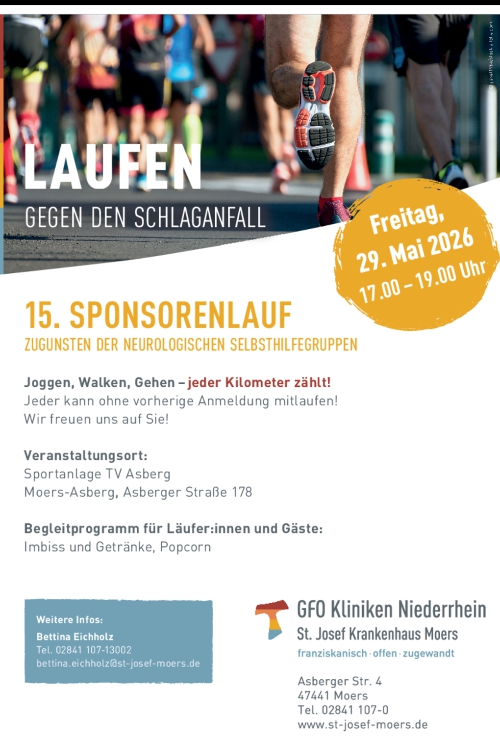 in diesem Jahr möchten wir wieder alle Mitglieder ermuntern sich beim diesjährigen Laufen gegen den Schlaganfall am 29.05.2026, 17-19 Uhr auf der Sportanlage des TV Asberg zu beteiligen! Jeder kann mitmachen ob Klein oder Groß. Jeder Kilometer zählt.
